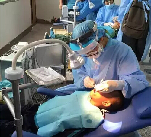 為當地小學生進行牙齒治療