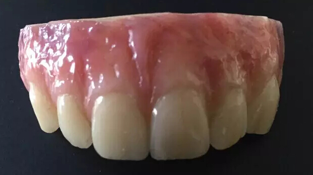 anaxGum的出現(xiàn)是致力于盡可能真實(shí)地再現(xiàn)不同顏色的天然牙齦。圖中病例的過程首先涂布遮色層然后進(jìn)行堆塑和塑形,這些都可用anax的樹脂材料來完成。然后在齦乳頭和牙齦上進(jìn)行點(diǎn)彩和拋光,最后進(jìn)行光固化,得到很好的牙齦部分美學(xué)重現(xiàn)。